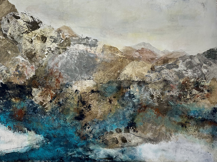 ![]() The Mountain Stream, 30x40", Mixed Media |